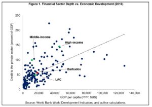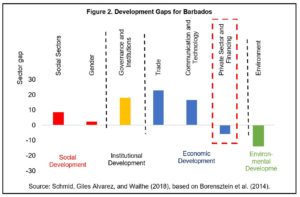 The mobilization of domestic financial resources is increasingly recognized as an important development challenge for countries around the world—this is also true for Barbados. Barriers to financial access act as a brake on private sector investment and growth, with adverse implications for broader economic development objectives. In order to shed light on this issue, our latest publication—“Financial Access and Inclusion: A Diagnostic for Barbados”—presents an assessment of financial market development, access, and inclusion in Barbados, identifying common and country-specific barriers, as well as relevant policy recommendations.Financial depth in Barbados: well behind high- and middle-income country averages…Barbados’ ratio of private sector credit to GDP is higher than many of its peers in the Caribbean, but remains low for a country at its level of income. While any assessment of financial sector development will depend on the metrics selected, the ratio of domestic private credit to GDP is generally considered a key indicator of sector depth and development. Domestic credit to the private sector in Barbados stood at about 56 percent of GDP in 2016 (Figure 1). This was high compared to many other Caribbean countries, but well below the average of 149 percent and 99 percent, respectively, for its high- and middle-income peers.Financial access remains a challenge for both individuals and firms…Private sector development and access to finance remain key challenges in Barbados. As highlighted in Figure 2, using Borenzstein et al.’s (2014) methodology, Schmid, Giles Álvarez, and Waithe (2018) find negative development gaps related to the private sector, as well as with respect to the costs and availability of financing.Surveys also point to important barriers linked to financial access and the costs of funding. For example, the 2014 PROTEqIN Caribbean enterprise survey also reveals that the costs of finance and access to financial services are among the most significant constraints facing Barbadian firms in terms of their productivity and performance (Figure 3).Key Barriers to Financial Access and Opportunities for ReformBased on metrics developed to identify common barriers to financial access and inclusion, our analysis suggests the following: