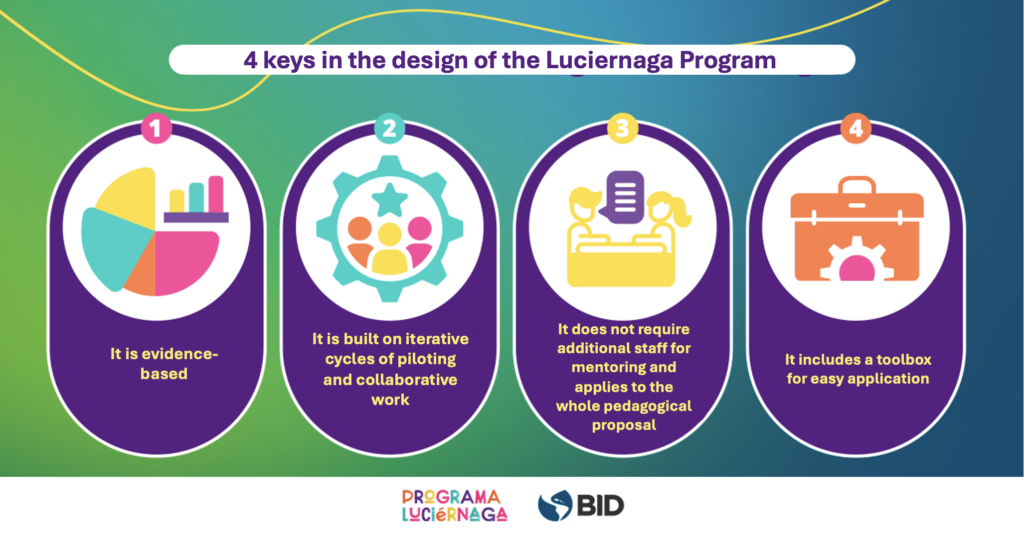 As a result, a curriculum was developed consisting of 12 practices that every educational agent is expected to master by the end of the mentoring program, as well as the Luciérnaga implementation methodology, which is based on cycles of planning, observation, and feedback. As it is built with the people who implement it, Luciérnaga responds to the reality of the center, which makes it robust.