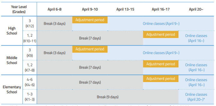 Phased online-learning was implemented, beginning with students in their final year of middle and high school on April 9, and was fully expanded to all remaining grades by April 20. One of the key reasons behind the idea of phased online learning was to buy some time for both teachers and the educational ICT infrastructure to make necessary preparations while mitigating unforeseen issues.