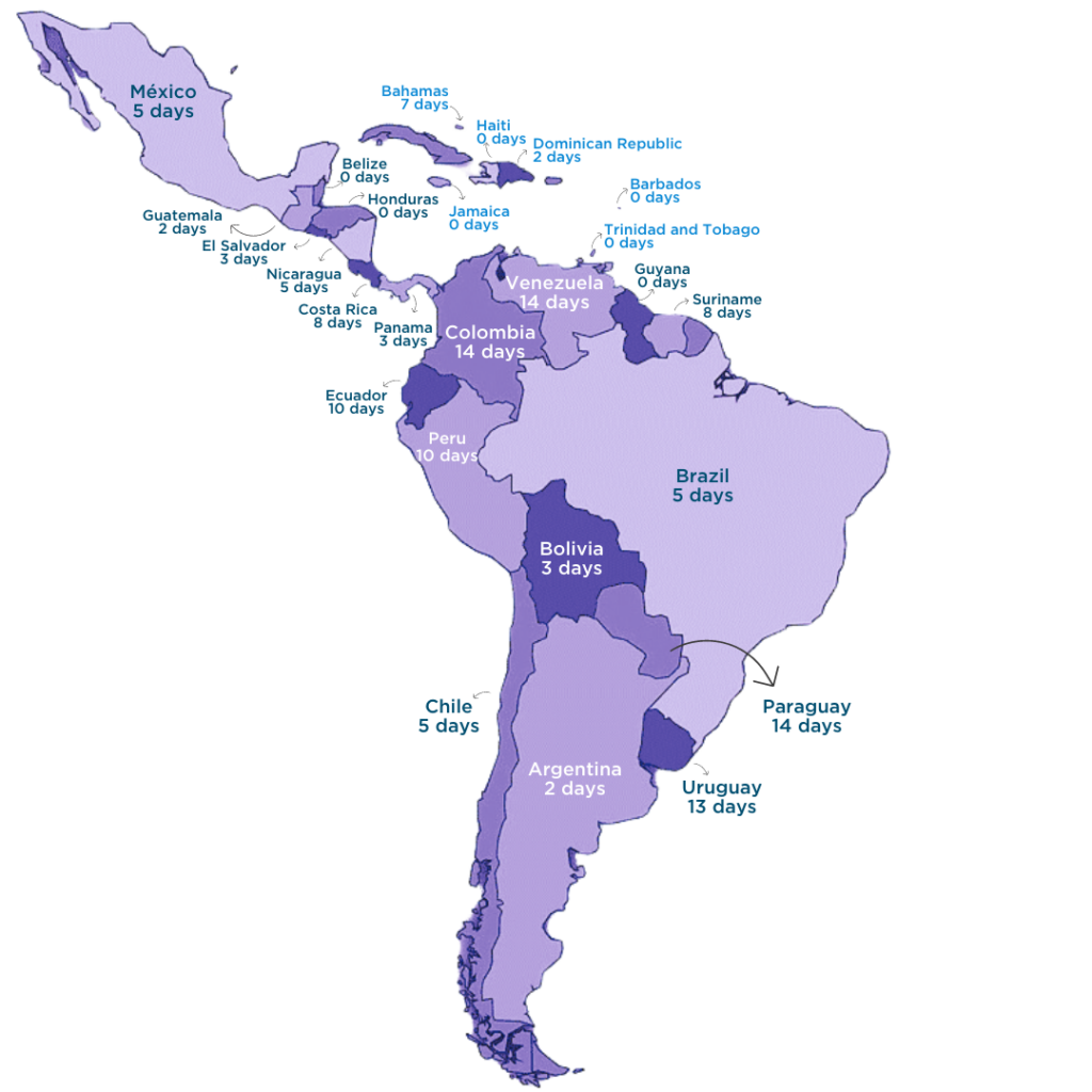 The Panorama for Fathers in the RegionDaniel's precautions were not unfounded. Out of the 26 borrowing countries in Latin America and the Caribbean from the IDB, only 18 have paternity leave policies. These leaves can range from 2 to 14 days in duration.