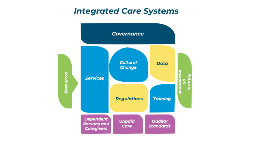 The chart below summarizes the components and main characteristics of Integrated Care Systems and, at the same time, is the roadmap that guided the discussions at the Regional Policy Dialogue: “Integrated Care Systems: Boosting Well-being, Equity and the Economy in Latin America and the Caribbean”. It took place in Antigua, Guatemala, in July 2024, and was organized by the Gender and Diversity Division and the Social Protection and Health Division of the Inter-American Development Bank.