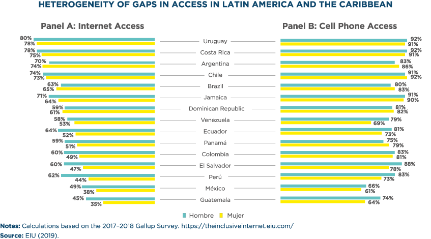 The participants asked the experts for recommendations about how to begin to close the many gaps – ranging from gender to digital infrastructure – related to digital health. According to a recent IDB report, at the regional level we are headed in the right direction in that 80% of men and women have a mobile telephone. However, there is a difference depending on where the population lives. There are gaps that favor access for men that range from 1 percentage point (in the case of Chile) to 18 percentage points (in the case of Peru).