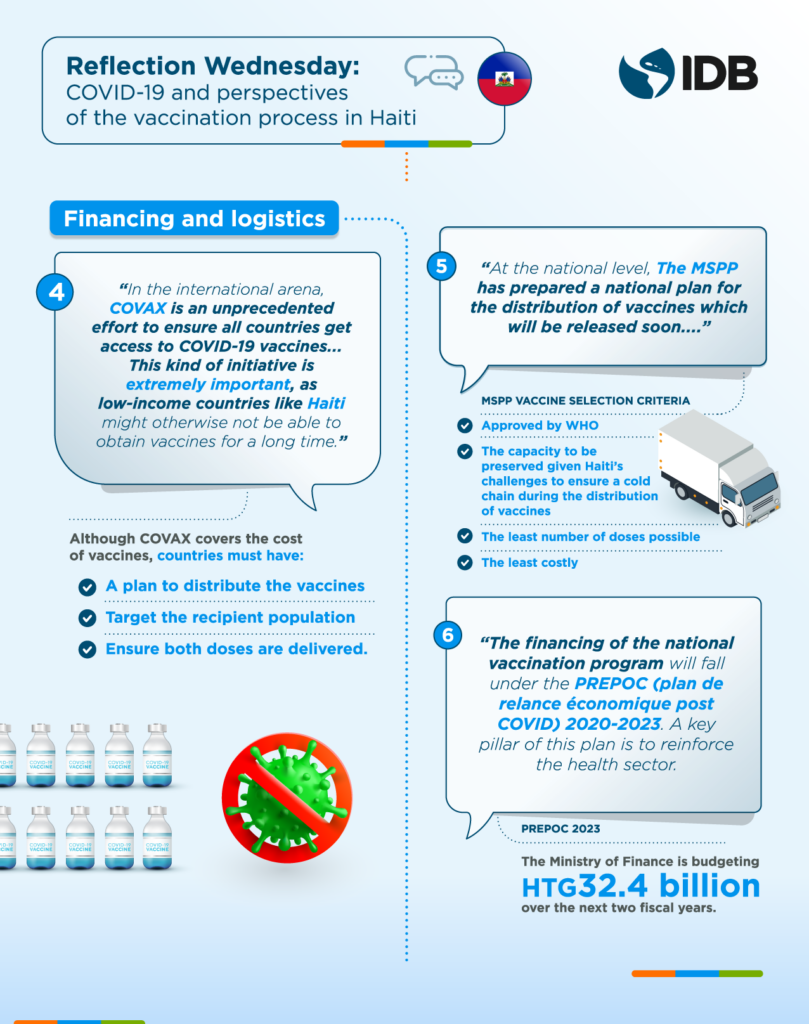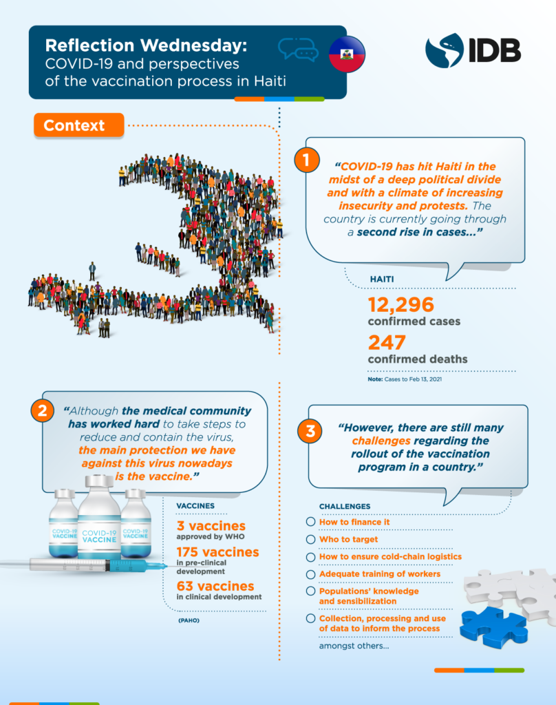 The deployment of COVID-19 vaccines in Haiti offers a solution to ease the effects of the pandemic, but also poses challenges.At theIDB, weremain committed to support the country of Haiti throughout this processand ensure all Haitians have access to this vaccine in a fair and equitable manner.