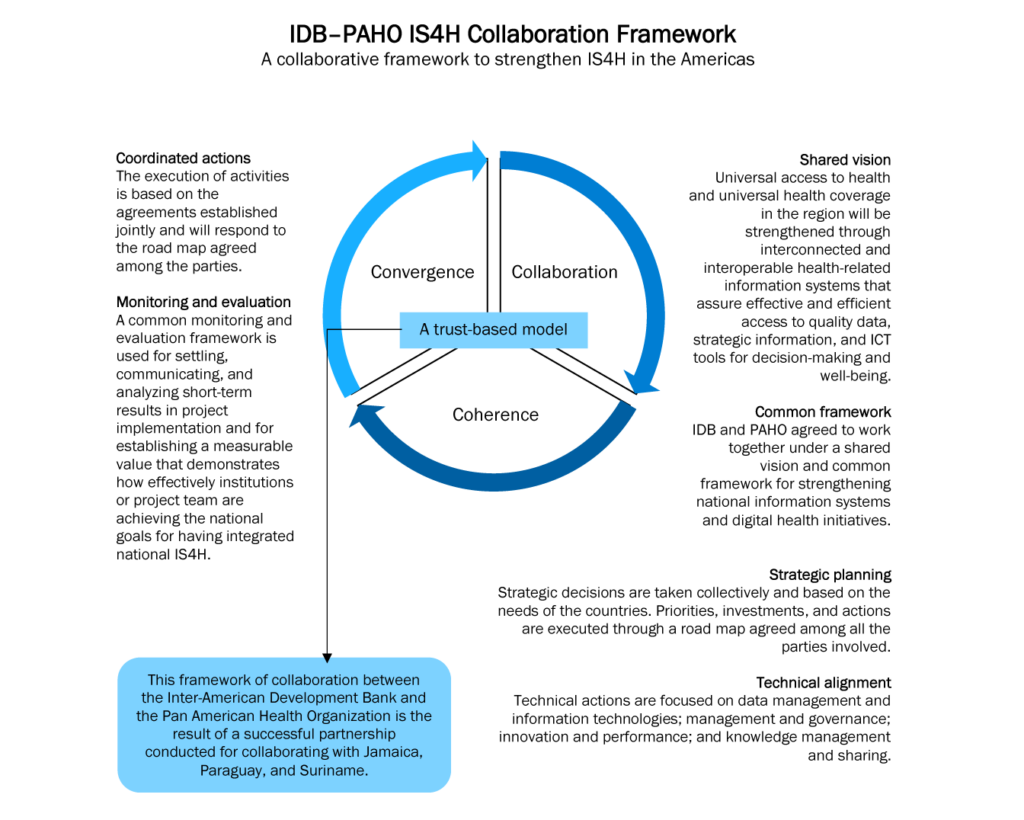 Figure 1. PAHO & the IDB Trust-Based modelFortunately, the collaboration between the IDB and PAHO was born long before the pandemic. PAHO and the IDB have been working closely together to advance digital transformation in the region since 2018. Jointly, we have developed a strategic and technical collaboration to accelerate the adoption of digital health interventions and strengthen human capital in Latin America and the Caribbean.