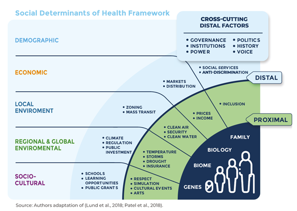 Social determinants include demographic and economic factors; local, regional and global environment; and socio-cultural aspects that have distal and proximal impacts on health (Figure 1). The new report highlights several key social determinants that influence health across the LAC region, including: