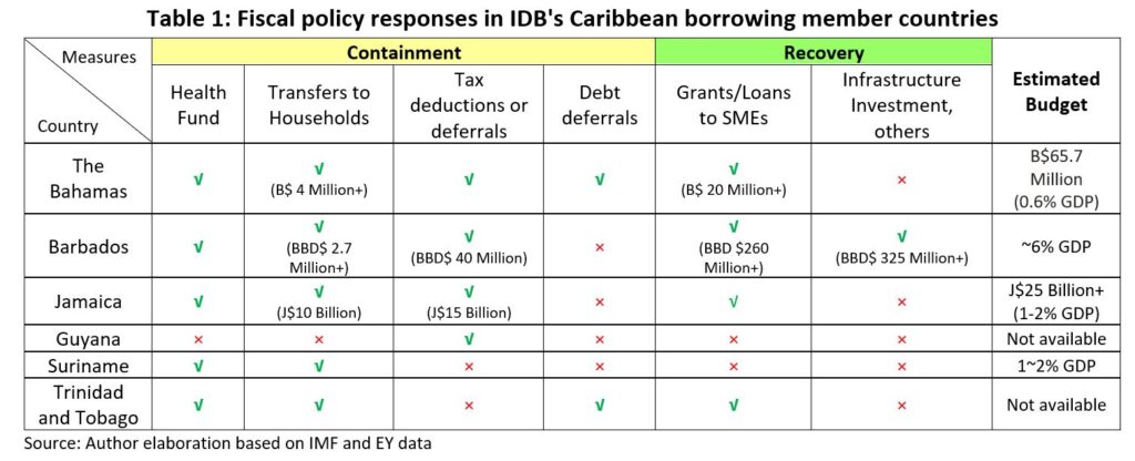 The COVID-19 pandemic caught the world by surprise, causing an unprecedented health emergency. Caribbean countries adopted containment measures to slow the spread of the disease and flatten the curve based on prior experiences and lessons around the world. Actions ranged from limits to social activities and closure of non-essential businesses, to curfew hours and complete lockdowns. While desirable from an epidemiological perspective, restricting social interaction has led to enormous economic costs and sparked the debate of "saving lives vs. saving livelihoods."