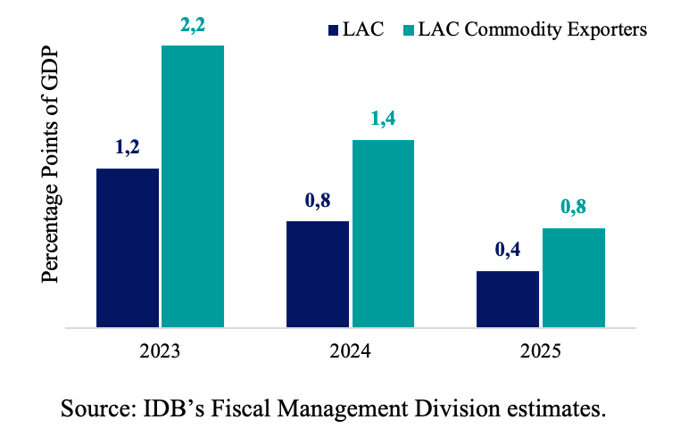 Such windfall, which in 2023 would be equivalent to the impact of three fiscal reforms for an average LAC country, will help offset part of the increase in spending.