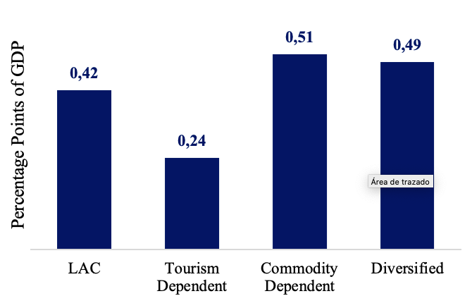 The Tourism Dependent countries are The Bahamas, Barbados, Belize, Haiti, Jamaica, Panama, Dominican Republic and Uruguay. The Commodity Dependent countries are Bolivia, Chile, Colombia, Ecuador, Guyana, Paraguay, Peru and Suriname. The Diversified countries are Argentina, Brazil, Costa Rica, El Salvador, Guatemala, Honduras, Mexico, Nicaragua, and Trinidad and Tobago.