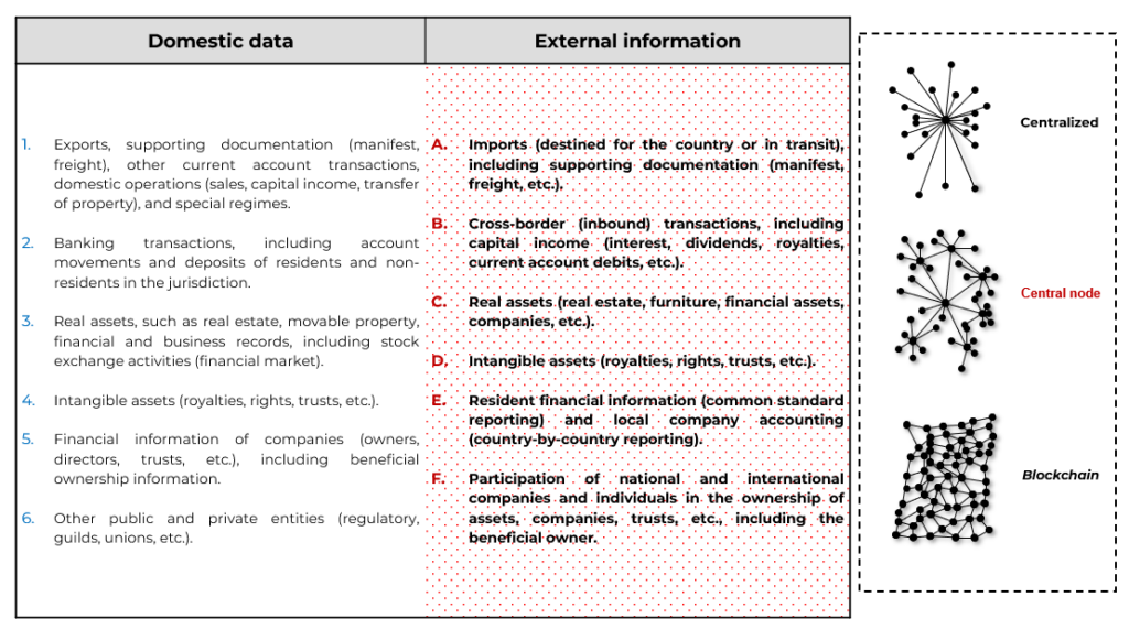 In terms of data from revenue entities, it is recommended toconcentrateits managementin a single organization,as this would help ensure that the data is gathered massively, systematically, and completely, taking advantage of synergies in processes and systems. This, added to the regulatory restriction of respecting tax secrecy, prescribes the application of a central node information distribution and security model (see Figure 2).