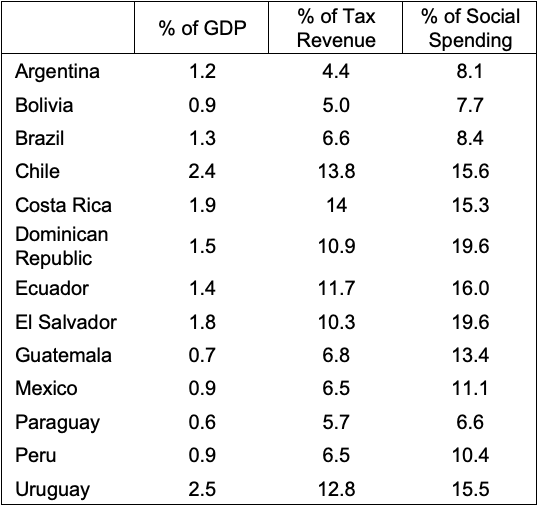 Source: ECLAC/Oxfam (2019). Note: “Social Spending” includes central government spending on health, education and social protection.In the case of reductions in the corporate tax rate, for example, a recent study found that in the year following the passage of the Tax Cuts and Jobs Act of 2017 (TCJA), U.S. business investment grew strongly compared to pre-TCJA forecasts. Nevertheless, the study concludes that this effect was primarily the result of rising domestic demand and sales, with the reduction in the corporate income tax rate appearing to have played only a minor role.