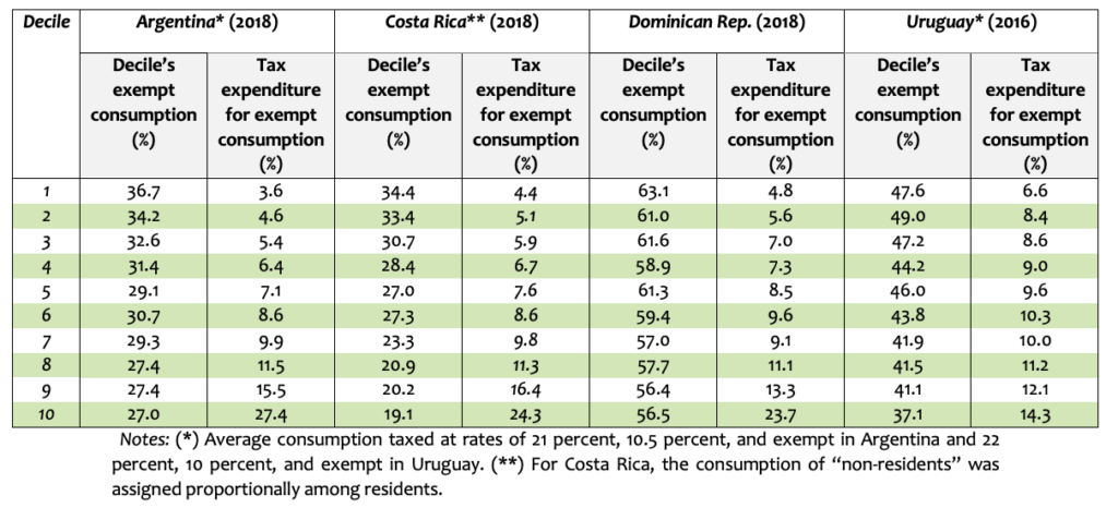 Table 2. Distribution of Exempt Consumption and Tax Expenditures by Income Decile (4 Countries)