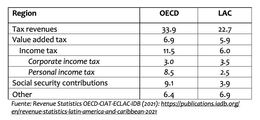 VAT is the main source of tax revenue in LAC. It accounted for an average of 5.9% of GDP in the 2017–2019 three-year period , which is comparable to the share raised by VAT in the 37 countries of the OECD in the same period.