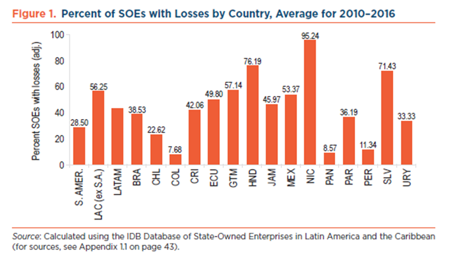 The state-owned enterprise (SOEs) sector in Latin America and the Caribbean (LAC) is struggling financially and suffering from political intervention. More than 40% of such enterprises have reported annual losses for several consecutive years in the past decade. The crisis has had important, and sometimes de-stabilizing impacts in the region. For example, heavy losses at state-owned enterprises have hurt solvency of certain countries, forcing them to seek IMF financial support. In other cases, political interference has prevented SOEs from increasing their prices or cutting their loses, hurting their financial situation and forcing rating agencies to downgrade their debt rating.