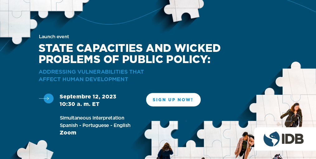 Join us on September 12th at 10:30 a.m. ET at the publication launch: "Capacities and Wicked Problems of Public Policy: Addressing Vulnerabilities that Affect Human Development” and discover how to approach wicked problems of public policy through tools that facilitate actor coordination, innovation, and continuous learning.