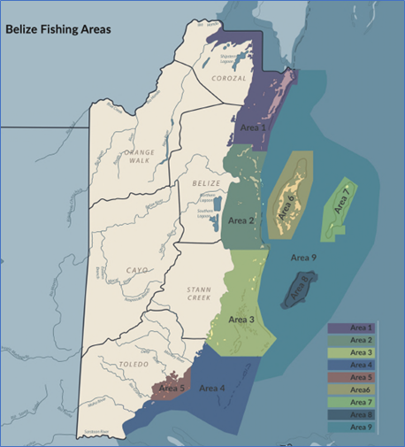 Figure 1: Map of Belize Fishing Areas Source: Arreguín-Sánchez and Quiroz (2023)