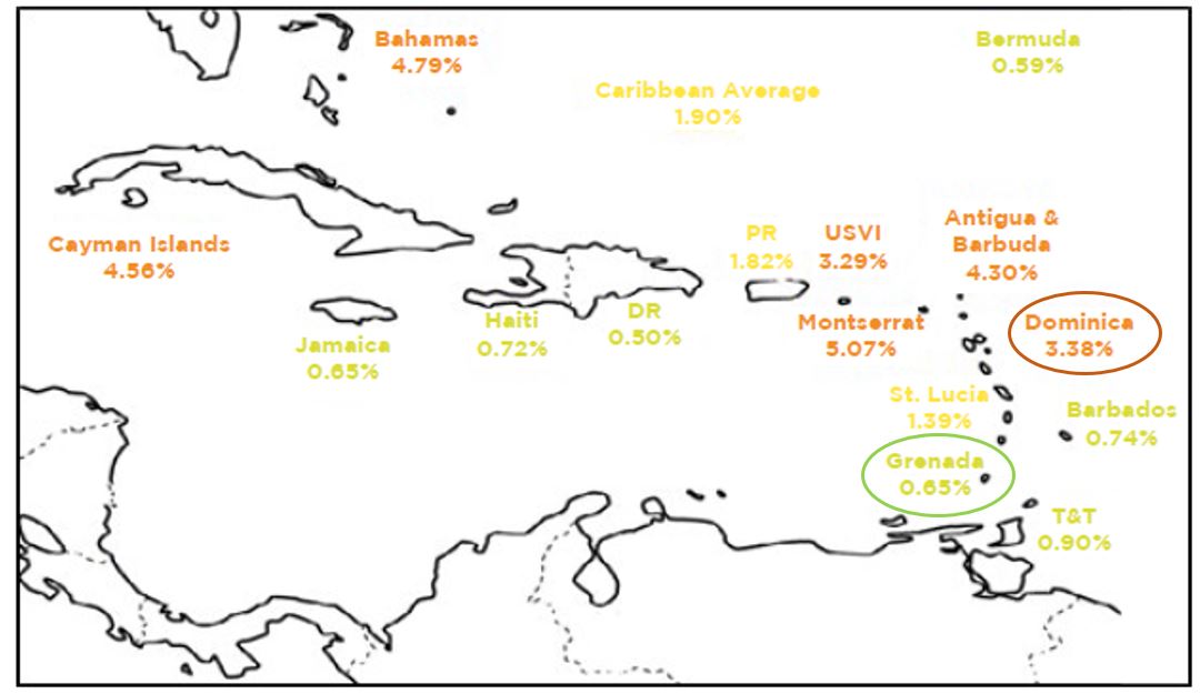 Finally, two Caribbean countries with different risk areas associated to hurricanes were selected: Dominica (representing the High Hurricane Risk region), and Grenada (representing the Low Hurricane Risk region).