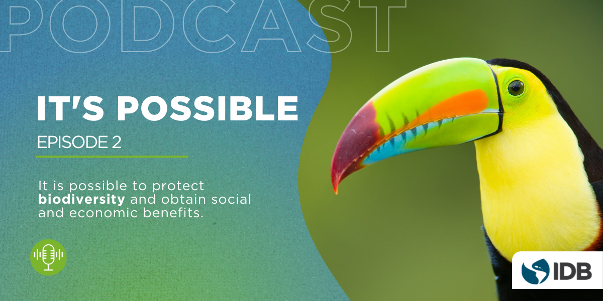 The Inter-American Development Bank launched the "It's Possible" podcast series featuring how climate action and biodiversity unlock multiple benefits in Latin America and the Caribbean. We invited high-level speakers for the biodiversity episode and discussed why and how investing in nature pays off. Click here to listen to whatCarlos Manuel Rodríguez,CEO of Global the Environment Facility,Laura Ortiz Montemayor, Chief Purpose Officer of SVX, Mexico; MarianaBellot, Senior Technical Advisor, The Biodiversity Finance Initiative, BIOFIN-UNDP; andGregory Watson, Principal Sector Specialist, Natural Capital, IDB talked about.