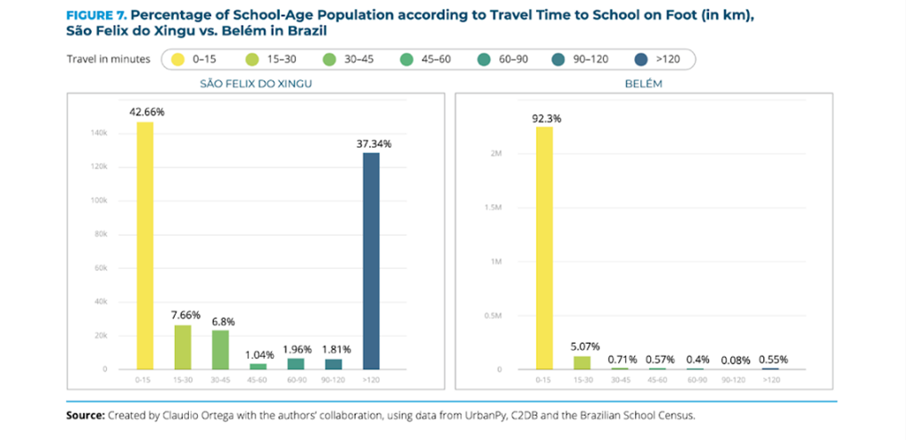 Over the past several years, the tool’s use has expanded to include several projects in Brazil, including IDB operations to support the expansion of school infrastructure, helping government officials in identifying the optimal location for new public schools in the State of Pará, a region with more than 8 million inhabitants. UrbanPy and its associated population estimates from Meta have also been used to assess school accessibility in the Amazon Region and calculate measures such as the average travel time to school among school-aged children.