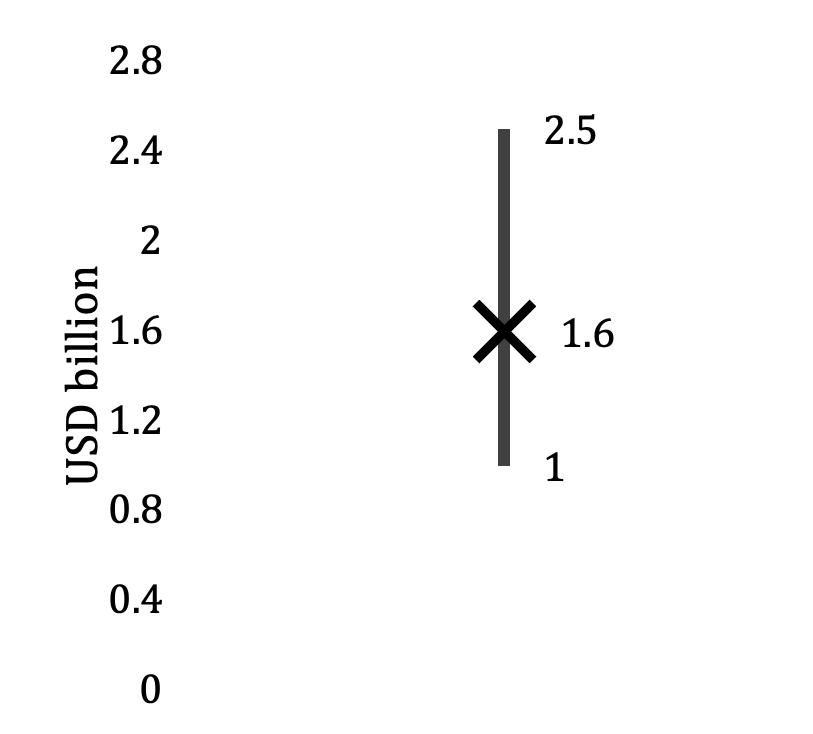 Figure 1. Estimates of Potential Damages (US$ Billion with a 90% Confidence Interval)