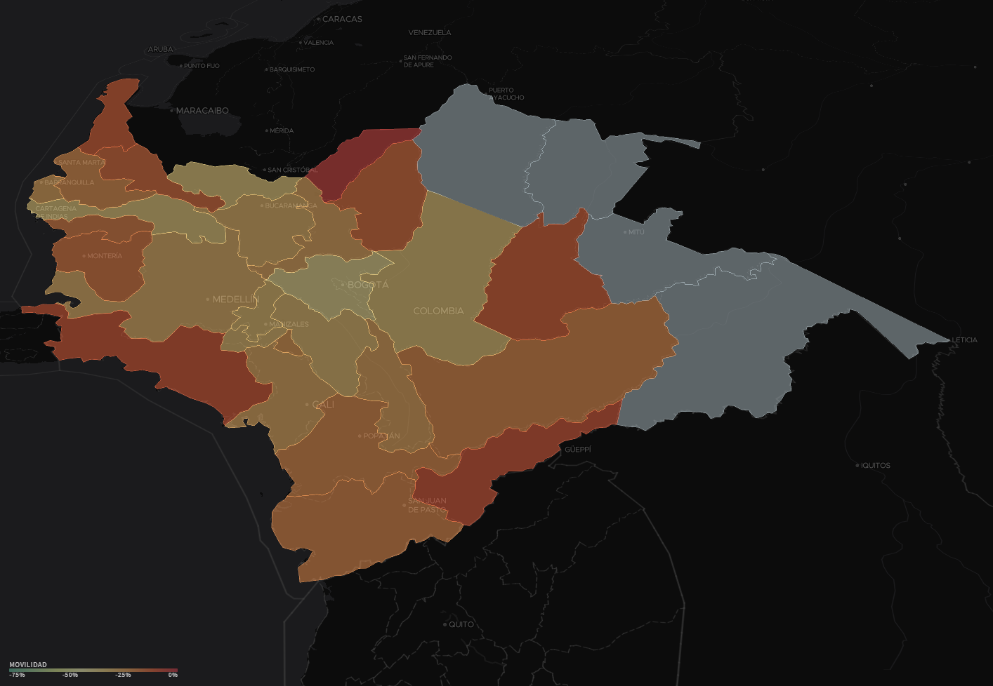 In recent weeks, the governments of Latin America and the Caribbean have implemented a battery of measures to encourage social distancing and reduce the infection rate of the coronavirus. Although it is clear that human mobility has indeed dropped significantly, important questions persist. How much has mobility declined in the region? In what countries has it dropped the most and why? When did mobility begin declining and how has it trended over time? Governments need answers with clear, objective, and precise information, information that is vital for them to be able to understand the context in which they are operating. This information could also shed light on the impact of the measures implemented, where they have been most strictly observed, and how their impact has developed over time. With the launch of the Human Mobility Map, we hope to help answer these questions and support governments’ efforts to beat the coronavirus pandemic. Specifically, the map offers mobility statistics with a high degree of spatial and temporal granularity. The tool gives the percentage decline—compared to a reference week, March 5 through 11—in the number of people who have traveled more than 1 km per day.
