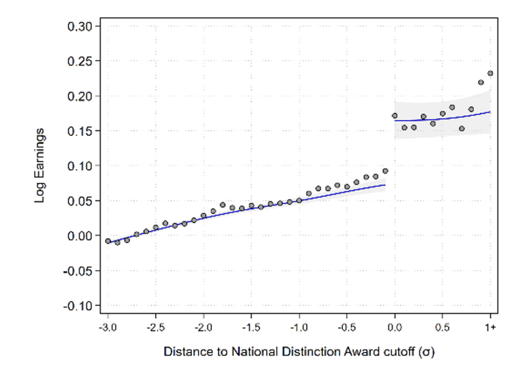 Figure 1. Effect of the National Distinction Award (Signal) on Early-Career Earnings