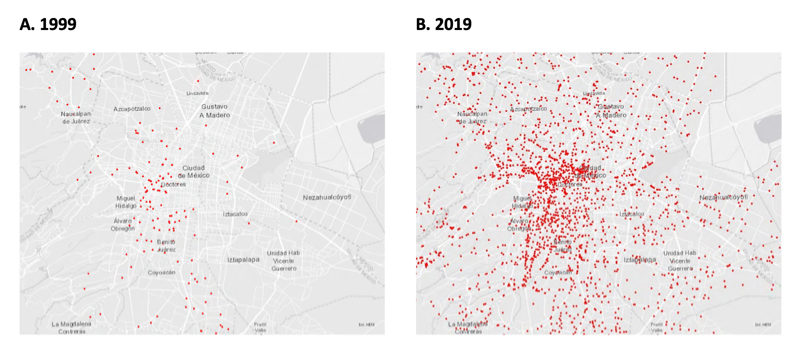 Figure 1. Expansion of Chains in Mexico City 1999 – 2019