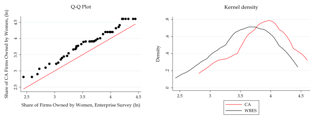 Data on the number and share of women-owned firms at the country-sector level are from the World Bank’s Enterprise Survey.