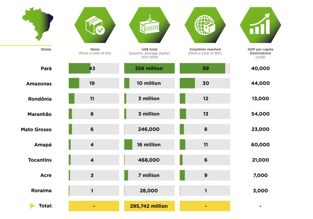 The recent analysis shows that Amazônia already knows how to produce forest-friendly products with enough proficiency to compete successfully in the global market. It also confirms that this region is only scratching the surface of its potential, with substantial differences and disparities among states.