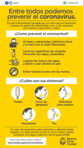 — BA Integración (@BA_Integracion) March 20, 2020- Measure 2. Use public space to disseminate key messages.It is important that key messages on controlling the disease and information on safe behavior (the distance kept when speaking to neighbors, washing hands, avoiding touching the face) are present in the neighborhoods’ public spaces as well as information and support that neighbors can turn to. This can be realized with the inclusion of quick signage or even painted stencils in public space made by neighborhood councils. Key deliverable: plan for dissemination by means of signage in public space.