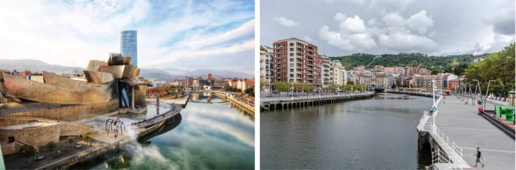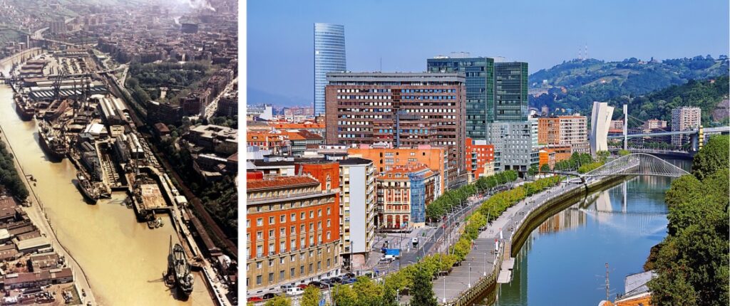 Left: Guggenheim Museum. Right: current view of the estuaryFour key factors in the success of Bilbao Ria 2000
