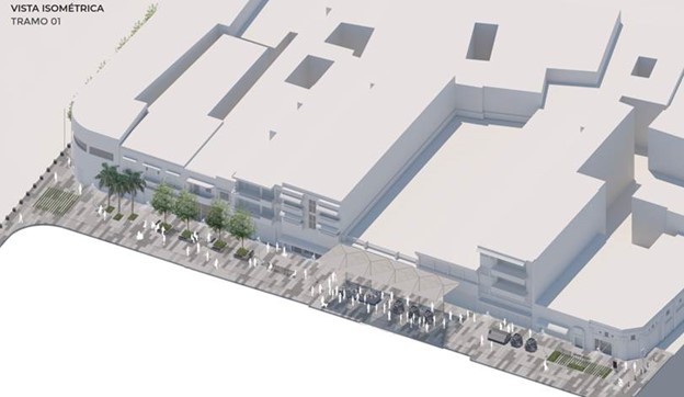 The isometric representation of "Segment 01" (image 3) offers a detailed and three-dimensional perspective of the proposed interventions to improve water management on Calle El Conde, particularly focused on flood mitigation. In this view, it is possible to appreciate how permeable pavement systems and rainwater retention systems are integrated into urban design, enhancing both functionality and aesthetics of the space.