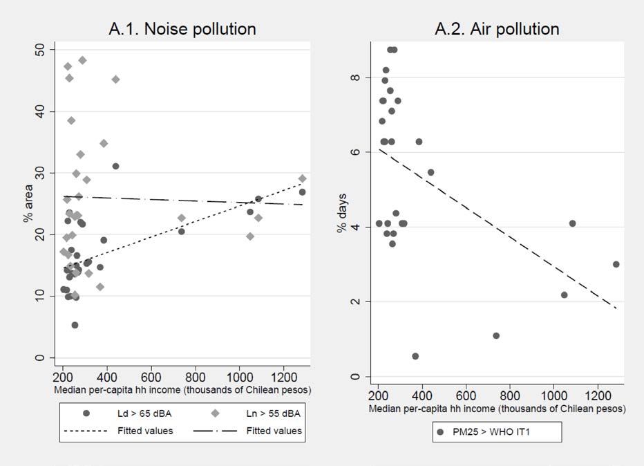 There is worldwide evidence of greater exposure to air and noise pollution for lower socioeconomic groups. LAC is no exception. A study published in 2015 documents that areas of Santiago, Chile, with lower socioeconomic status have 21%more days with unhealthy air quality than other areas of the city.