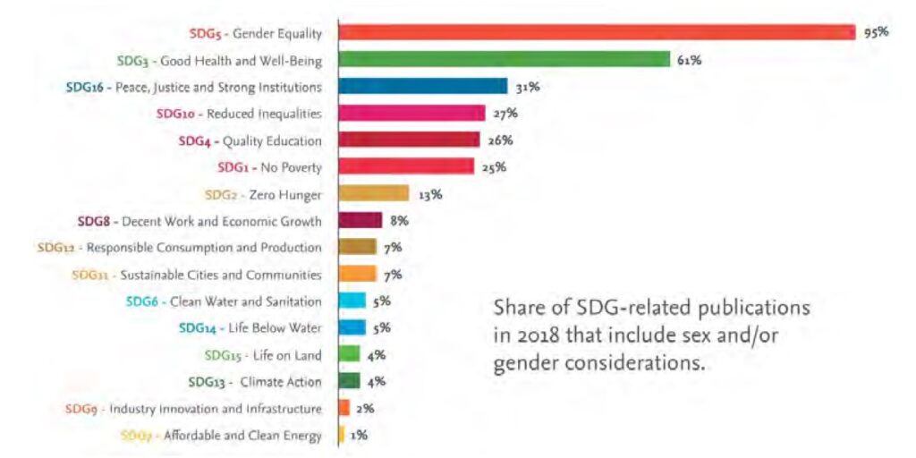 Graph 1: Proportion of publications related to the SDGs in 2018 that include issues related to sex or gender