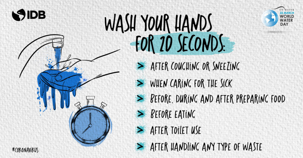The coronovarius pandemic (COVID-19) is a reminder of how vital safe water and sanitation services are to all.Today as we commemorate World Water Day, we remind you of the importance of taking care of the resource, but in this particular year we want to underline the importance of taking care of ourselves and our communities. Washing your hands thoroughly with soap and water for 20 seconds is the best way to prevent the spread of the coronavirus. Along with social distancing measures, soap and water is, to date, the most efficient and cheapest method to avoid contagion. For this reason, this World Water Day, our call cannot be more urgent: To take care of water more than ever and to wash your hands!However, what happens when the only source of water for families or entire communities is far from home? Like the vast majority of global crises, the coronavirus pandemic poses a greater threat to the most vulnerable citizens.In Latin America and the Caribbean we have greatly improved in providing access to water; but universal services are still far ahead. This is particularly important for our region, the most urbanized on the planet, where nearly 80% live in cities.It is precisely the most vulnerable population to which we have to focus a good part of our efforts in times of global emergency such as the one we are experiencing. Today about a third of the population in our city lacks safe drinking water service. The situation is much more precarious in terms of sanitation service, since 70% of households do not have access to adequate human waste management. A significant percentage of households would not have access to hygiene facilities: about 75% or less of households in at least six countries do not have basic hygiene services.It is also important to ensure the provision of water, sanitation and hygiene services in health centers. About 5% of healthcare centers do not have access to water services, which represents a double challenge for these healthcare centers when facing the coronavirus emergency, as they experience high patient demand and lack the means to maintain a clean environment.In this scenario, the water and sanitation operating companies are an important ally to contain the advance of the pandemic. Emergency measures must be taken, including developing contingency plans, if they do not already have them, to ensure continuous quality service.Right now the rational use of water is critical to face the pandemic. It is extremely important to use water primarily for personal hygiene, without excesses and to postpone other less urgent uses, so as not to expose the water production and distribution systems to limits that are difficult to manage. In this sense, it is important to turn off the water tap while rubbing your hands for 20 seconds to avoid wasting it. It's also important to stay calm and not hoard bottled water stocks in a way that doesn't happen, as we've all seen, with other products like toilet paper and alcohol based hand sanitizers.In our region, countries like El Salvador and cities like Sao Paulo have already announced extensions for payment and suspension of the collection of basic services. This is particularly important for users in the informal sector who will not receive daily wages due to the drastic decreases in economic activity as a consequence of social distancing and quarantine measures; as well as vulnerable population in hospitals, asylums, sanatoriums and jails.The pandemic forces us to act quickly, but appropriately, without forgetting that the great pending task is to ensure that basic water and sanitation services are accessible to all citizens.This World Water Day once again presents us with the reminder that the best investment of any country is to ensure that access to resources such as water have the highest priority. The call is to wash our hands, to avoid contagion, but the goal of bringing safe water and sanitation for everyone today requires more than ever a hands on approach. To stay informed about preventive measures against coronavirus, we recommend to check on the official website of the World Health Organization.