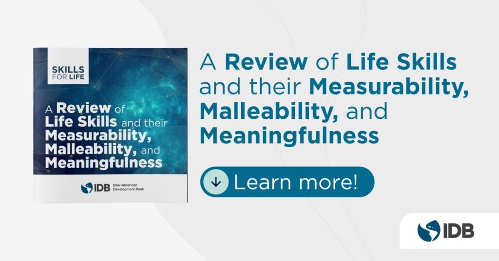 For more information, check the IDB latest publication “A review of life skills and their measurability, malleability, and meaningfulness” and stay tuned and follow our blog series on education, economic opportunities, and #skills21.