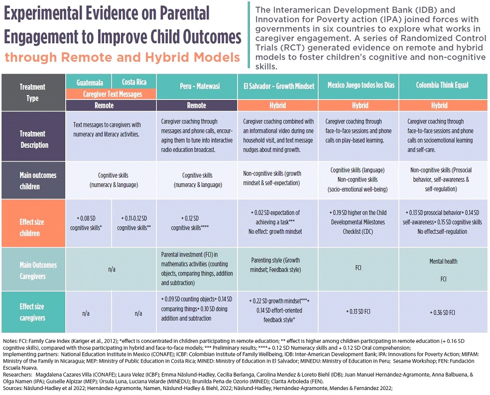 These disparities highlight the need for targeted interventions and support for low-SES caregivers to engage with young children. To understand what works, the Inter-American Development Bank (IDB) and Innovation for Poverty Action (IPA) partnered with ministries of education in Colombia, Costa Rica, Guatemala, Mexico, and Peru.