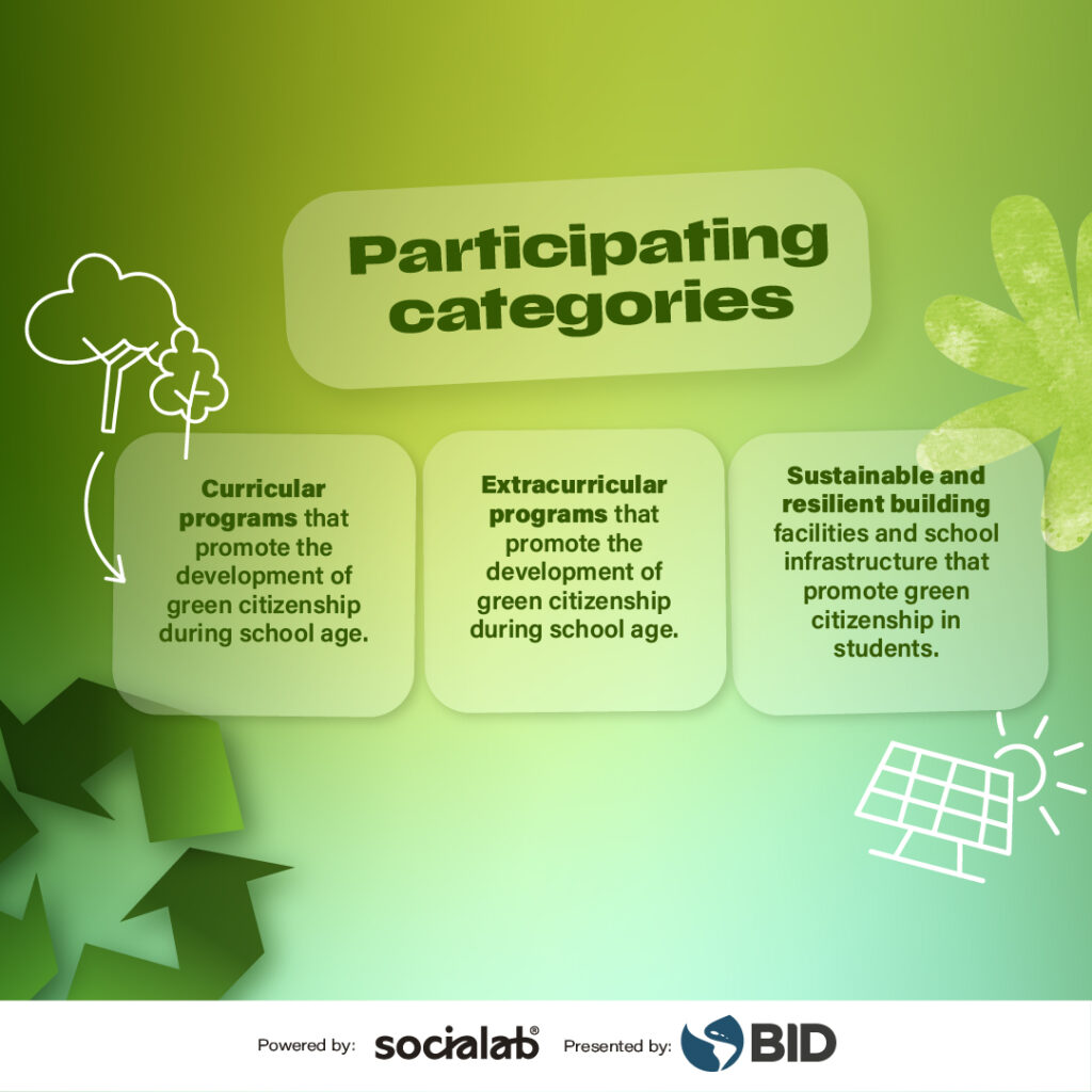 Green Minds is a call organized by the IDB in collaboration with Socialab, aimed at recognizing outstanding educational programs and sustainable, resilient school infrastructure that foster the development of green citizenship among school-aged children. This initiative seeks to identify innovative experiences in three categories: