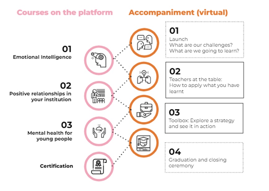 - Psychosocial circles of support: support groups to strengthen educators’ skills.