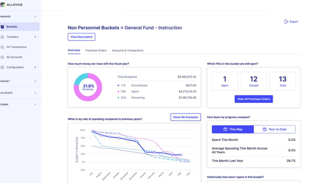 The goal of the Manage platform is to relieve principals of tedious financial tasks while empowering them to strategically align resources with student needs. Clear, accessible financial insights help leaders maximize their resources and focus on what truly matters: serving children and their communities.