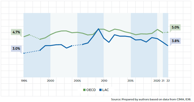 Yet this perspective, while important, is insufficient. Public spending on education in the region fell to 3.8% of GDP in 2022, the lowest level in more than 20 years. Post-pandemic recovery has been slow, while learning gaps equivalent to several years of schooling compared with OECD countries persist.