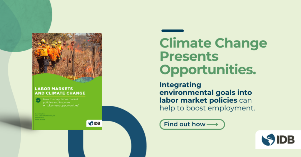 Training for upskilling or reskilling and cultivating a resilient human capital is key to the climate agenda.Learn more about the promising intersections between labor markets and climate change in this Policy Brief 👉 Labor Markets and Climate Change: How to Adapt Labor Market Policies and Improve Employment Opportunities Actions to promote green jobs and a just transition in Latin America and the Caribbean