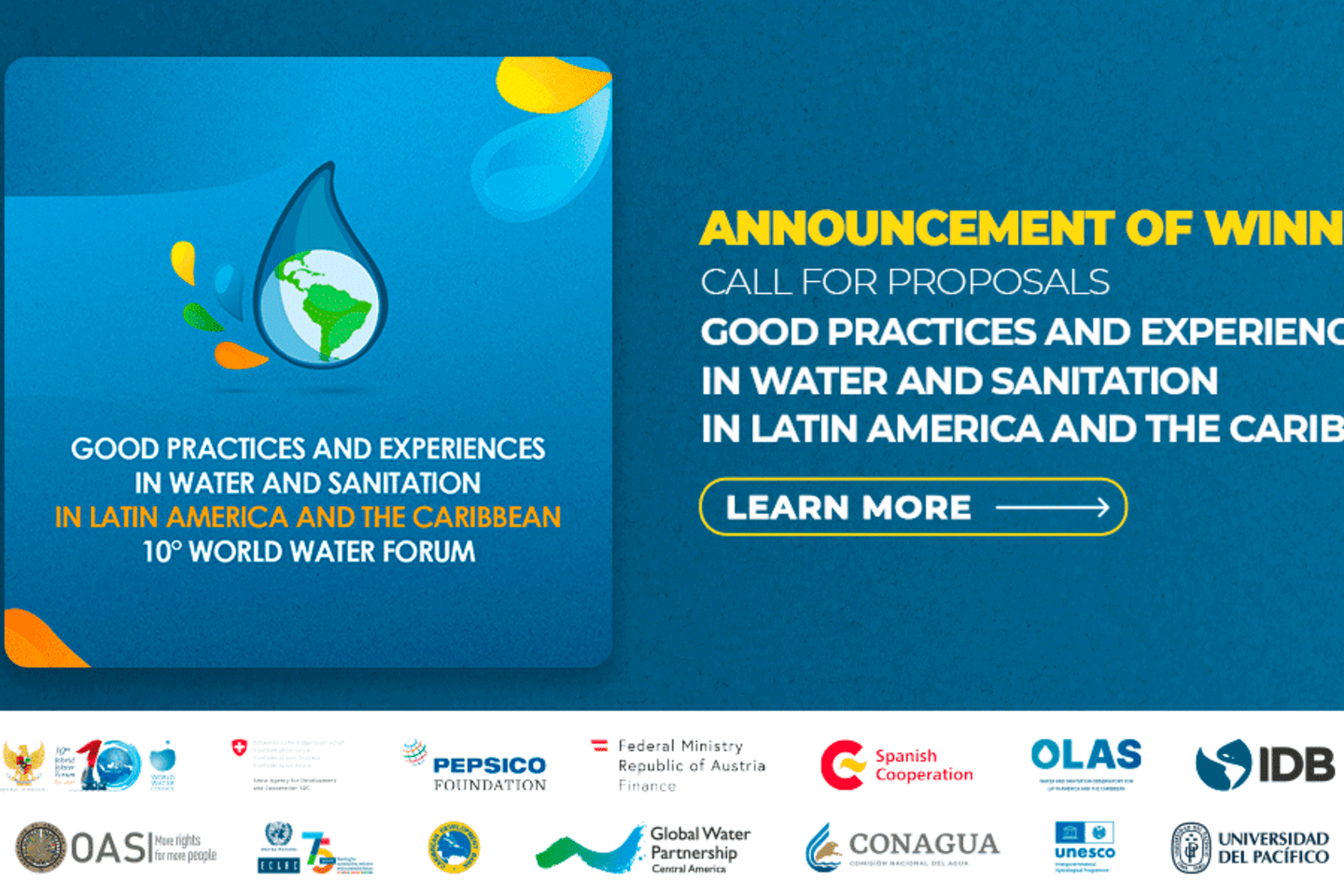 Allies, Evaluators, and Collaborators: A Collective EffortThis call would not be possible without the support and collaboration of a broad network of allies committed to sustainable development and equitable access to water and sanitation. From the World Water Council to the Inter-American Development Bank (IDB) as coordinator and the Organization of American States (OAS) as co-coordinator, each of our partners plays a fundamental role in the realization of this initiative.