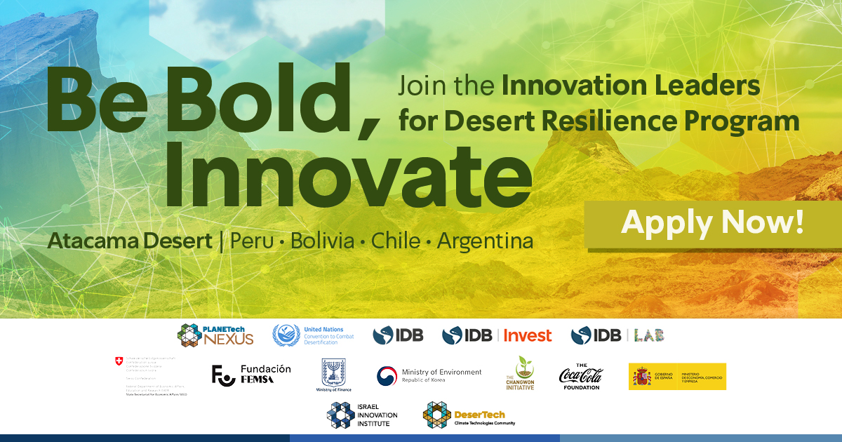 Applications are now open for this exciting five-month initiative bringing together changemakers from Peru, Bolivia, Chile, and Argentina.The program offers support for pilot project implementation and funding opportunities. Ideal candidates include representatives working in water management, sustainable agriculture, renewable energy, or infrastructure who are committed to driving innovative solutions for drought-related challenges.