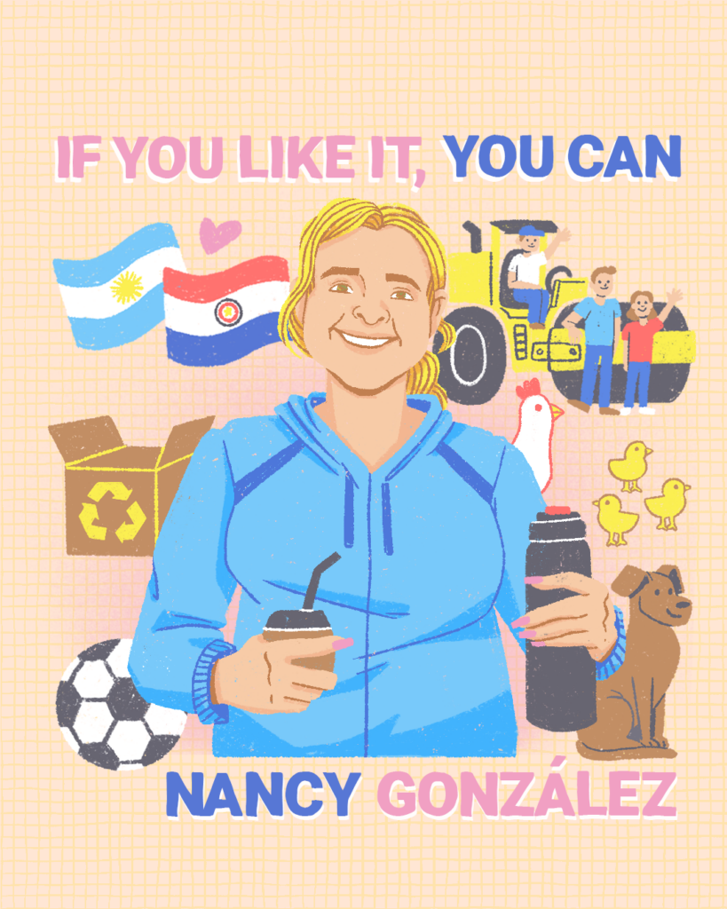 Ilustration of Nancy González, one of the few women construction machine operators in Argentina.