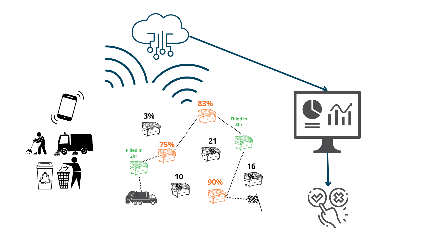 Thanks to IoT, the distance traveled per trip can be shortened by up to 30%, which can reduce greenhouse gas emissions (more than 10% for carbon dioxide (CO2), and increase collection trucks’ life spans, among others.