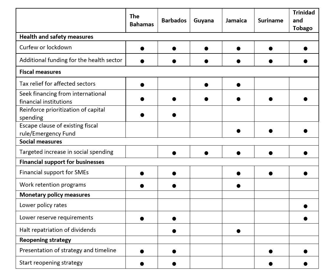 Table 1. Policy Measures in Caribbean Countries