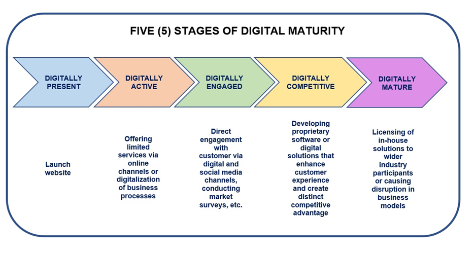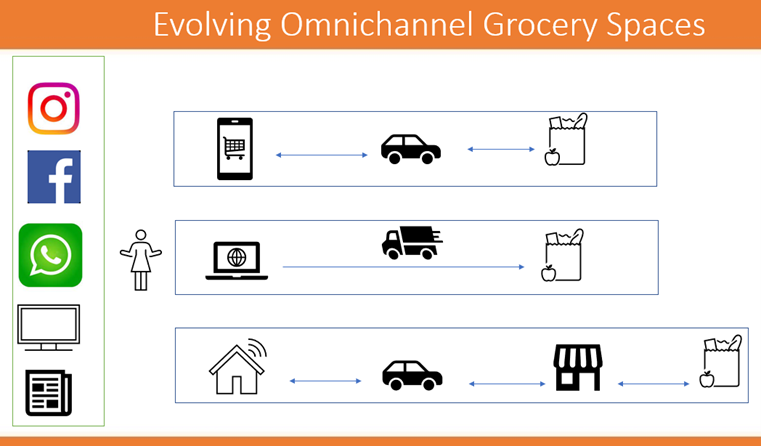 The 5 stages of Digital MaturityInstagram, Facebook and WhatsApp are among the social media giants that afford smaller vendors a free space to provide the consumer with a virtual grocery gallery and also offer integrated e-commerce solutions and external order processing as well. This sector is described as an omnichannel space and can include an online or Messenger App order placement, online or in-store payment option, and/or delivery to a specified location or pick-up at the store.