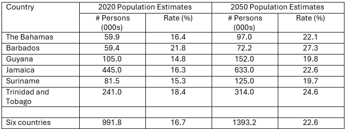 Projections of Disability Prevalence 2020 and 2050 in 6 Caribbean Countries