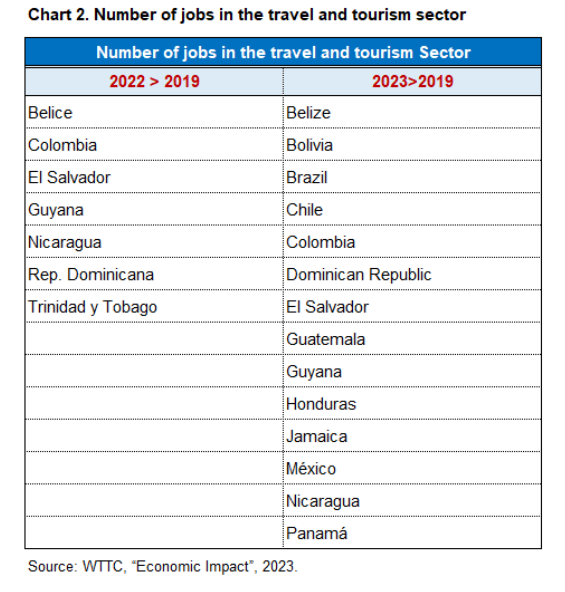 - Regarding estimates for 2023, the WTTC expects a somewhat improved pace of recovery at the employment level since it estimates that 14 of the 26 borrowing countries will ensure that their travel and tourism sector generates the same or a more significant number of jobs in 2023 than in 2019 (54% of countries, 14 of the 26).