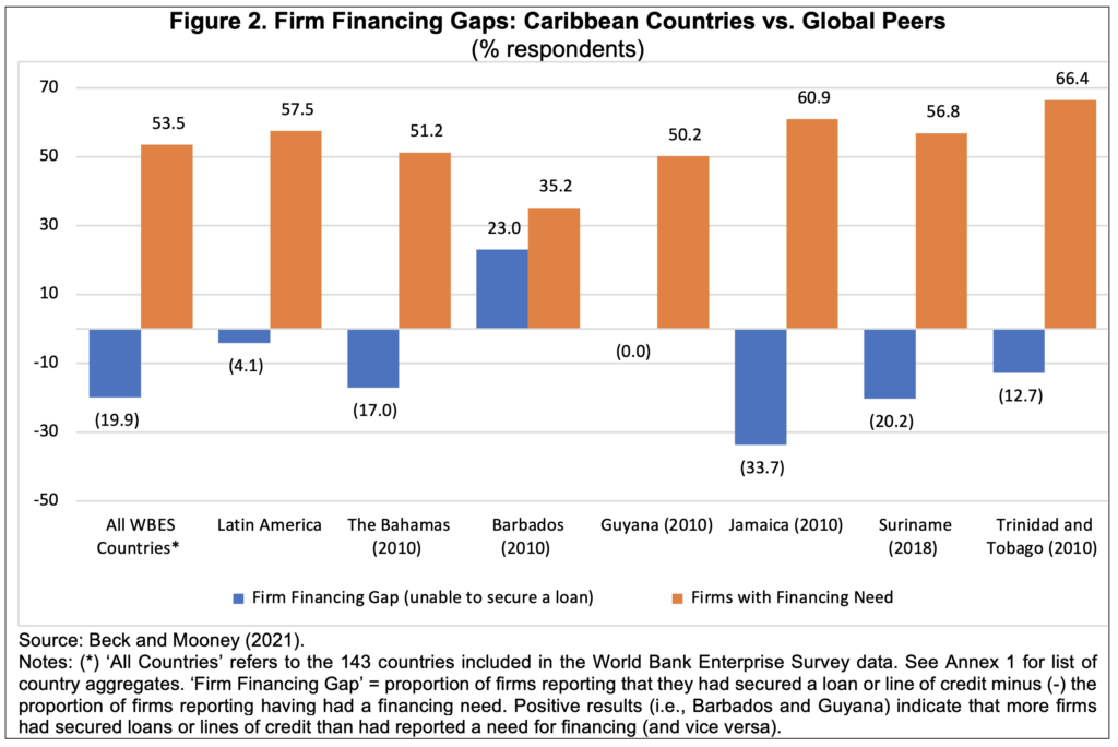 Financing gaps between some Caribbean country firms and their global peers are wide…